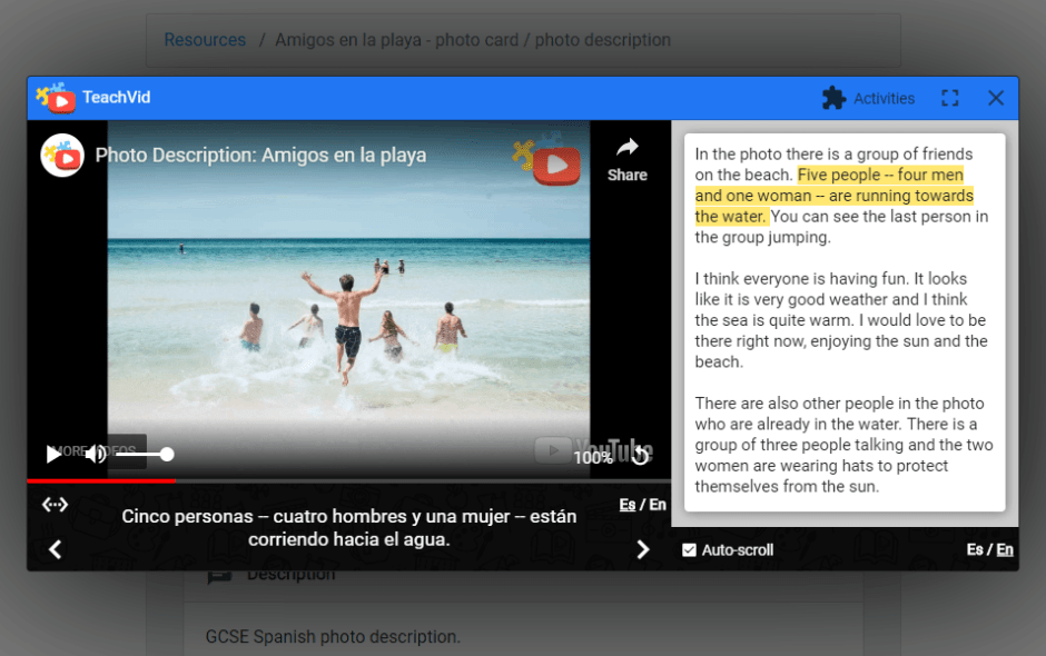 You may have already come across our blog post introducing “Learn mode” in TeachVid, in which we describe how TeachVid’s unique interactive player + captions + transcript / translation + various other tools combine to help students to engage with the video content even before they embark on any of the activities. (If not, here it is…)